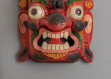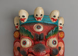 Wooden Bhairava Mask Wall Art | Handcrafted Tibetan Protector Mask with Acrylic Paint
