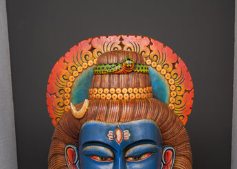 Carved by expert artisans and weighing 3.66 kg, this hand-carved Shiva wall mask exemplifies the artistry of the Himalayas and the profound significance of Mahadev. The tranquil yet powerful look of Lord Shiva represents inner strength and cosmic harmony. This Lord Shiva wooden mask, Mahadev wall art, and Hindu deity wall hanging are essential additions to any spiritually inspired area, whether for spiritual or cultural purposes.