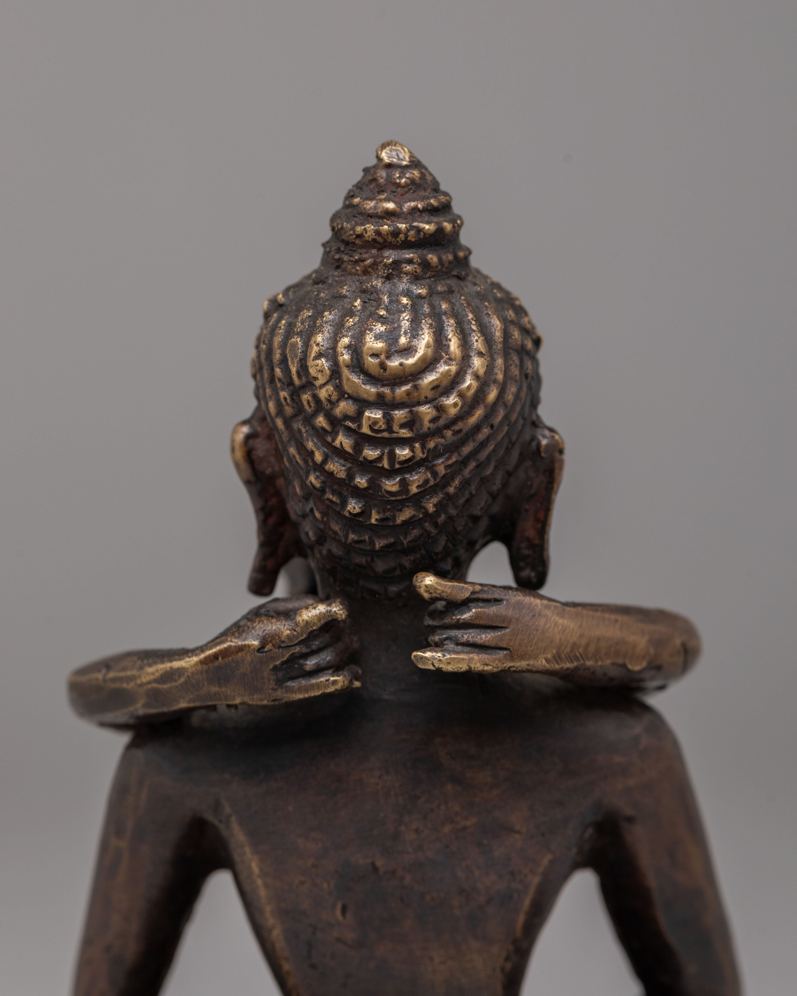 Expertly handcrafted from brass, this statue reflects traditional Himalayan devotional craftsmanship inspired by classical monastery art. The rich metallic tone enhances the sculpted details, giving the figure a sacred and graceful presence. Brass is widely used in Buddhist ritual sculptures due to its strong connection with spiritual artistry and traditional worship practices. The refined finishing and detailed carving highlight the skill of artisans who preserve generations of sacred statue making techniques, creating a piece that carries both artistic and devotional value.