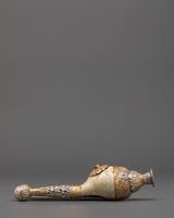 The Buddhist Ritual Conch is a sacred ceremonial instrument used in Tibetan Buddhist practices, symbolizing the spreading of the Buddha’s teachings. Measuring 21.5 cm in height and 14.5 cm in width, this exquisite conch is crafted from a natural conch shell, mounted in white copper alloy, and adorned with gold plating. Its elegant design combines traditional craftsmanship with spiritual symbolism, making it a meaningful addition to any Buddhist altar or meditation space.