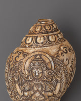 Tibetan Ritual Dung-Dkar with Chenrezig Carving | Spiritual Sound Instrument for Meditation