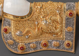 Weighing 4 kg for a single piece and a total of 7.27 kg for the complete set, this conch shell is substantial in presence and is built to make a statement in any space. The conch shell itself is an ancient symbol of auspiciousness, often used in spiritual practices and rituals. The combination of silver and gold plating elevates its value, a piece for your altar, home, or collection. Available for purchase as a single piece or in a set, this conch shell brings both beauty and powerful spiritual symbolism to any space.