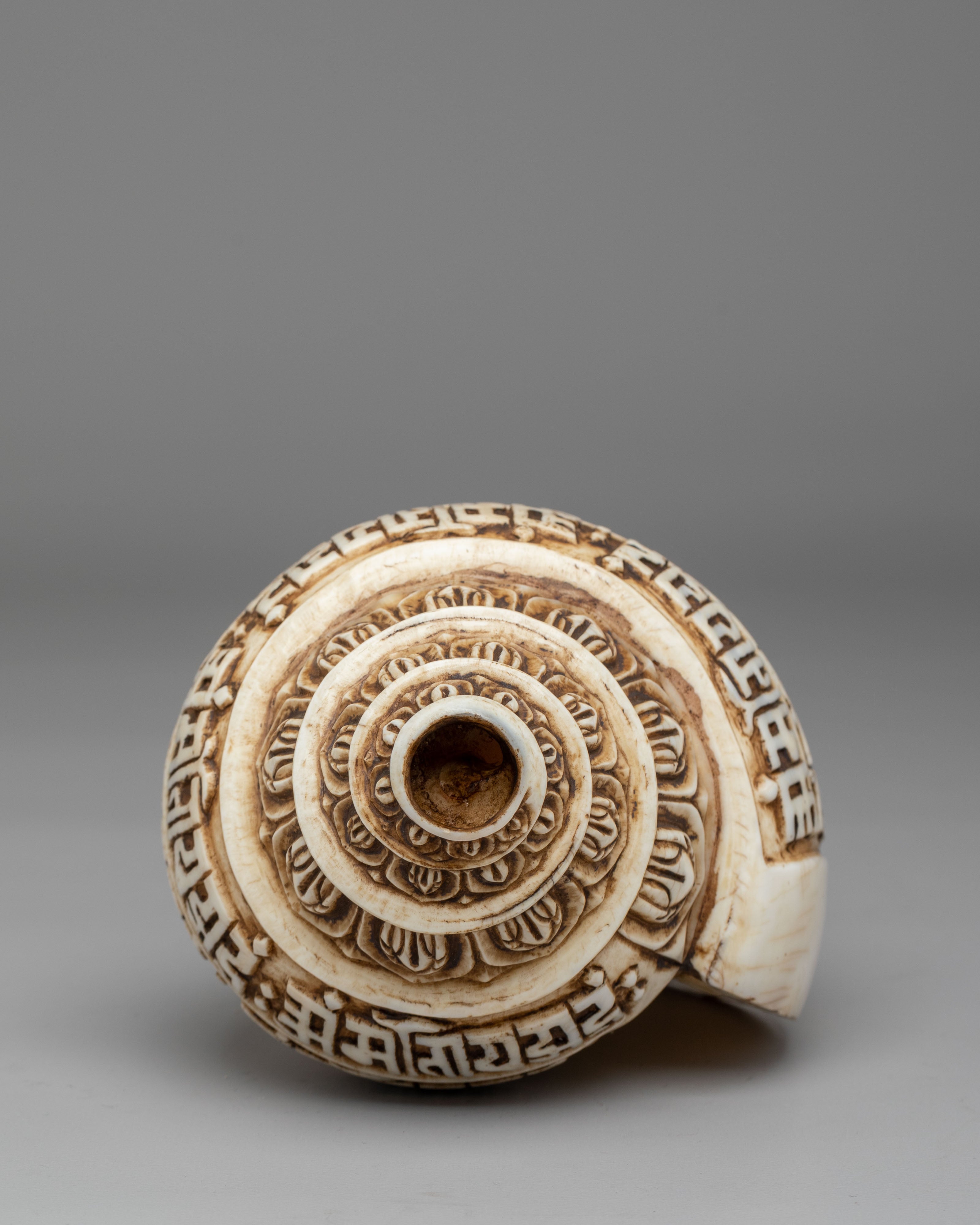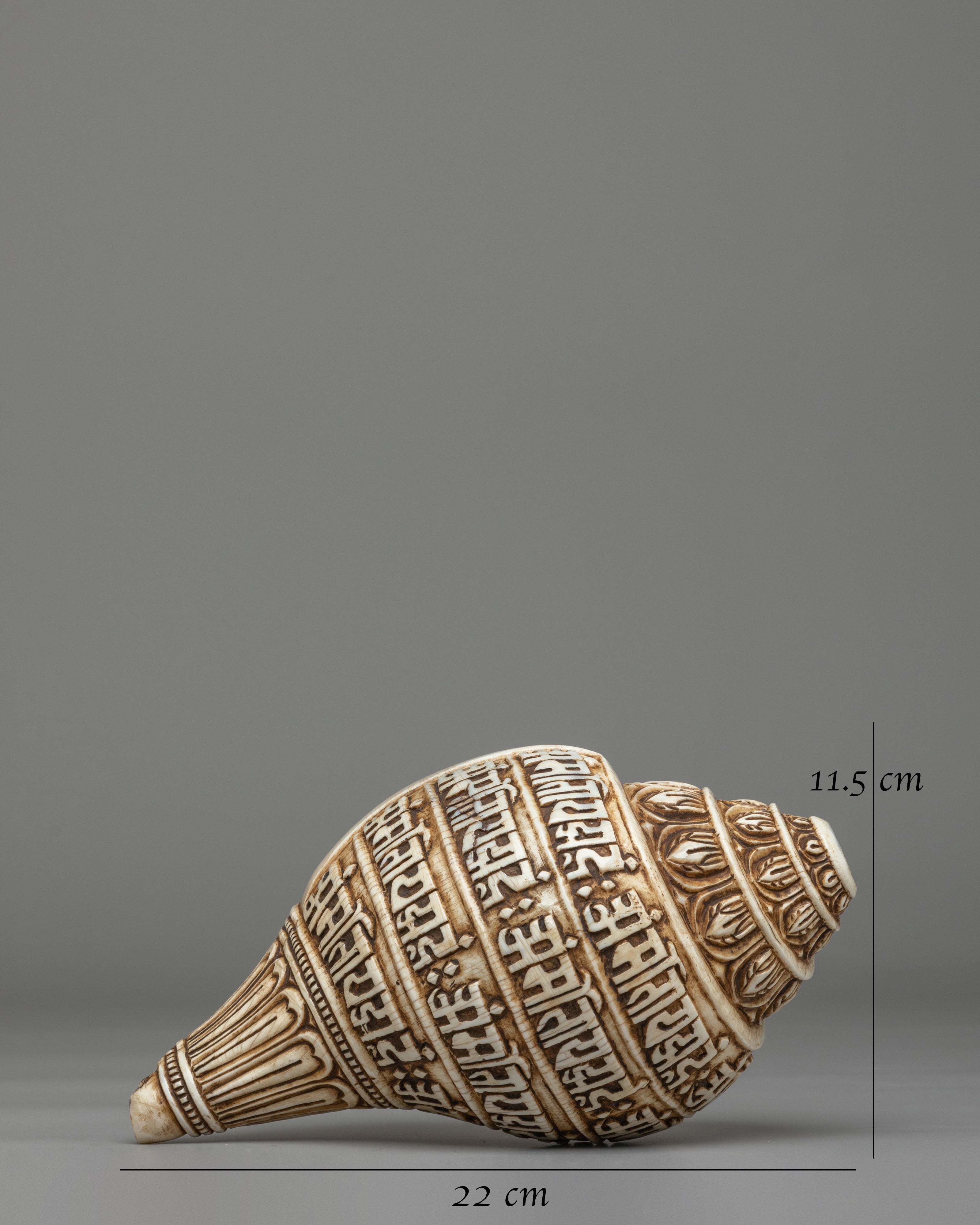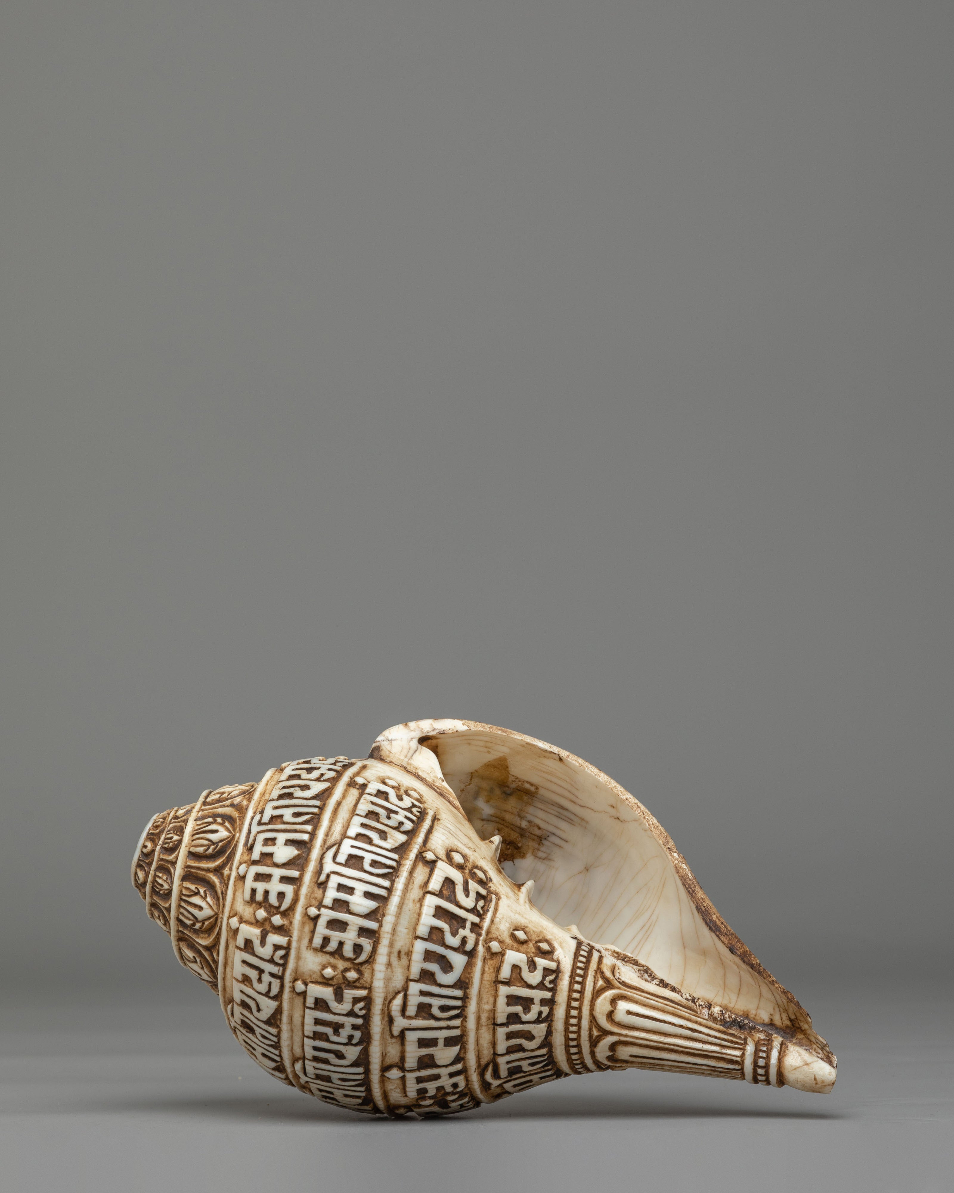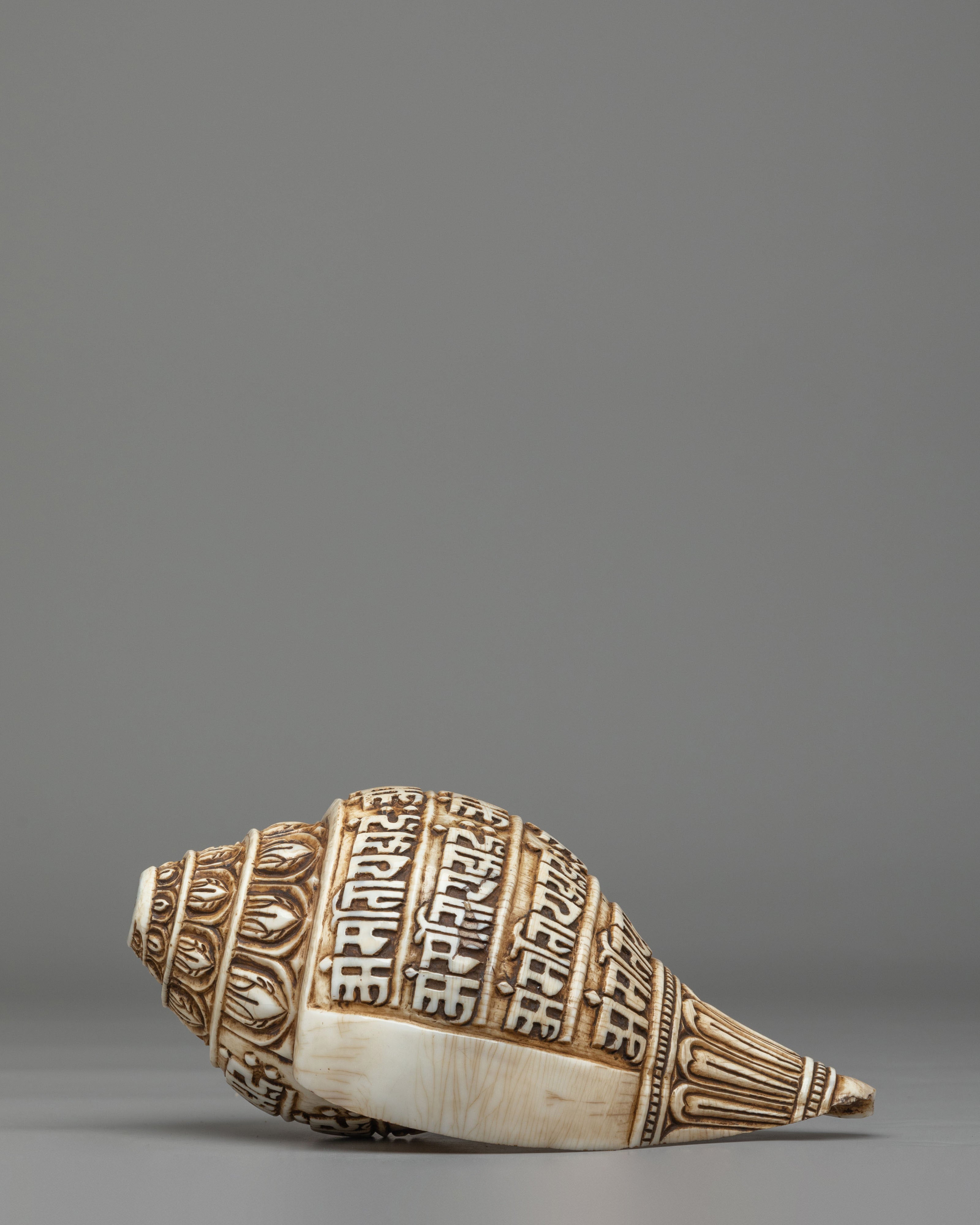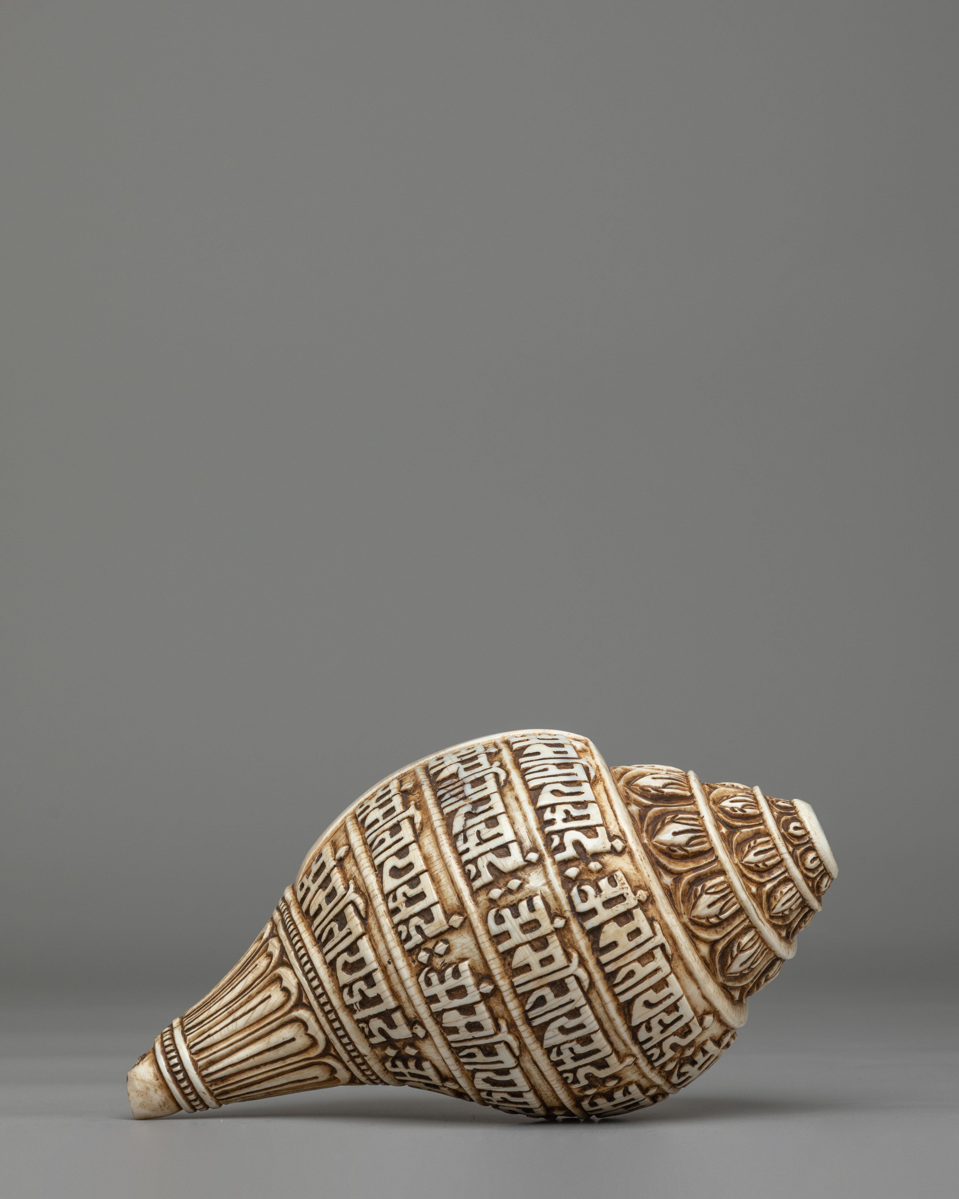 Spiritual Mantra Conch | Himalayan Engraved Buddhist Prayer Shell Decor