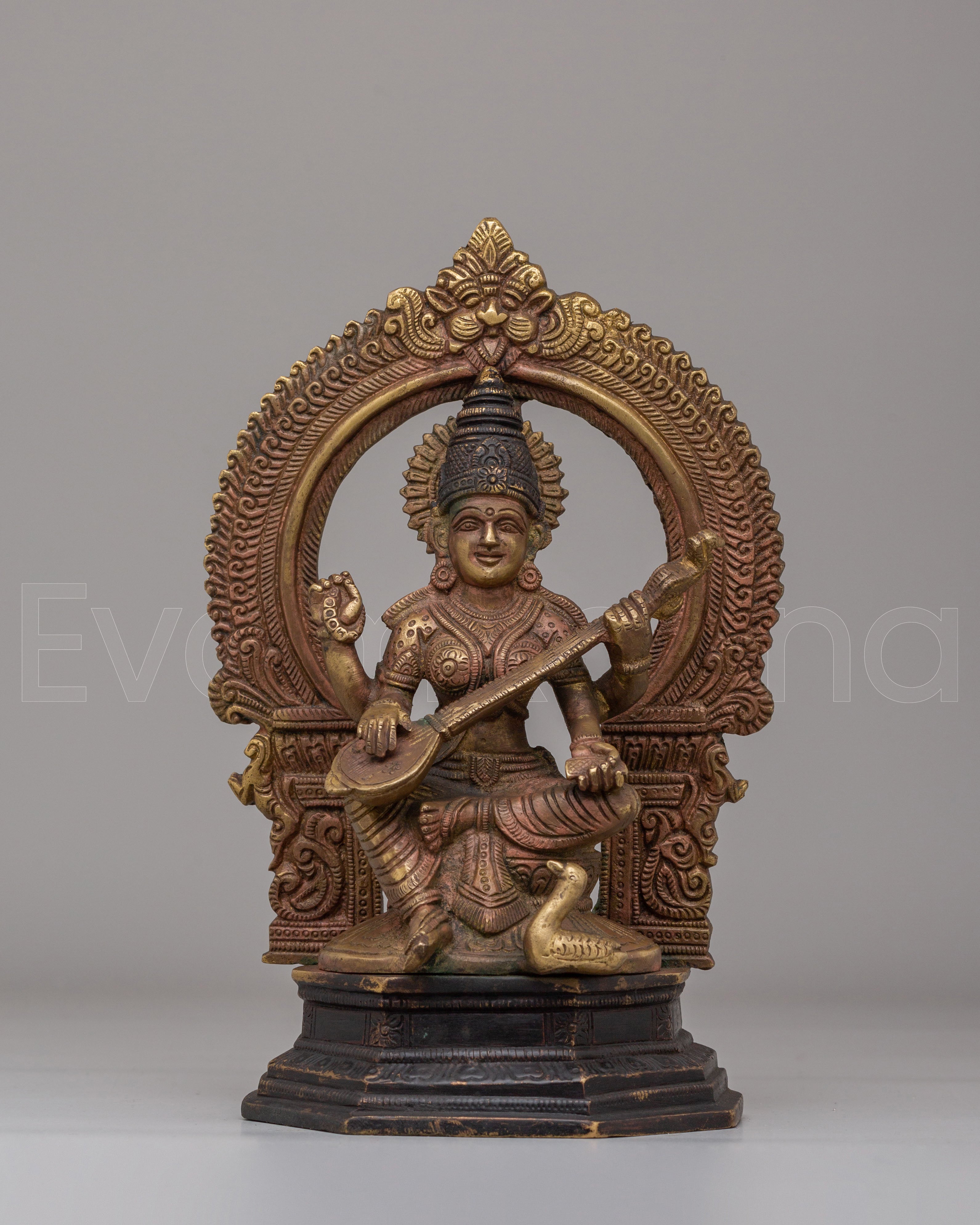 Handcrafted Saraswati Statue for Altar | Sacred Hindu Deity Idol