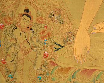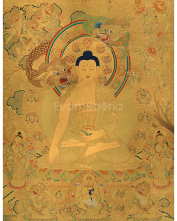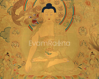 Discover serenity with our magnificent High-Quality Buddha Shakyamuni Thangka Print, which exquisitely portrays Siddhartha Gautama, the enlightened founder of Buddhism. This thangka print perfectly conveys the fundamental teachings of Buddha Shakyamuni on harmony and inner serenity. Expertly printed on fine canvas to ensure everlasting beauty. Invite the calm energy of Shakyamuni Buddha into your environment and allow it to fill it with spiritual balance and eternal wisdom. With this sophisticated thangka print, a representation of endless enlightenment and artistic grace, you can elevate both your physical surroundings and spiritual path.