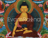 High-Quality Giclee Print of Gotama Buddha Thangka | Five Dhyani Buddhas and Enlightened Bodhisattvas