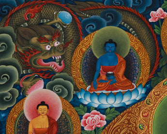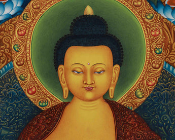 The Gotama Buddha Thangka is a stunning visual representation of spiritual wisdom and compassion, offering a timeless connection to the Buddha's sacred teachings. This high-quality giclée print on cotton canvas beautifully preserves the essence of the original artwork, with each element rendered in exceptional detail to honor the depth of Tibetan Buddhist tradition. Designed to inspire peace and contemplation, this print is an ideal addition to meditation spaces, altars, or spiritual interiors.