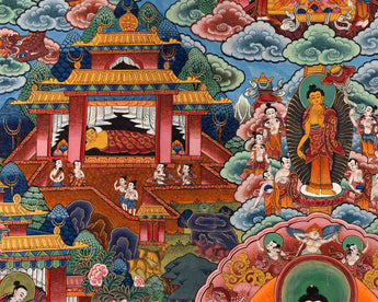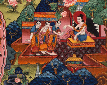 Historical Shakyamuni Buddha Story Nepali Painting Print | Newari Art Print For Mindfulness & Home Decor