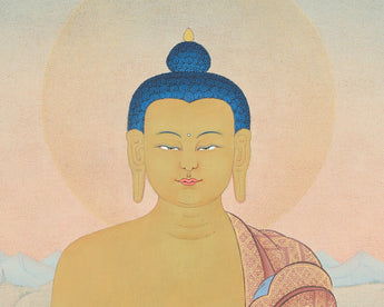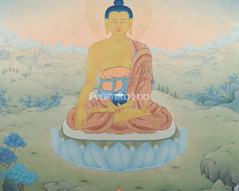 Discover the realm of serene spirituality with the Shakyamuni Buddha Thangka Print. This captivating artwork, expertly printed using the giclee technique on a premium cotton matte canvas, brings forth the tranquil presence of Shakyamuni Buddha in all his enlightened glory. Embrace yourself in the profound calm of Shakyamuni Buddha's sitting position, radiating peace and inner wisdom. His serene expression and gentle demeanor inspire a deep sense of spirituality, inviting you to embark on a transformative journey of self-discovery and enlightenment. The Canvas Print is able to showcase the divine essence of Shakyamuni Buddha. Every line and color faithfully captures the essence of his enlightened presence, creating a visual masterpiece that emanates peace and harmony to the surrounding. Invite the sacred energy of Shakyamuni Buddha into your home or meditation space with this spiritual fine art. Let its spiritual vibrations create an atmosphere of peace, harmony, and contemplation. Embrace the profound teachings of Shakyamuni Buddha and experience the inner calm that comes from connecting with his enlightened spirit.