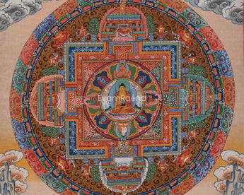 Introducing a captivating digital print featuring Shakyamuni Buddha Mandala art, the historical Buddha. This stunning artwork showcases the intricate details of the mandala, including the lotus petals, the four gates, and the central image of Shakyamuni. The vibrant colors and symmetrical patterns of the print are a testament to the skill and expertise of the artist. The Shakyamuni mandala is a powerful symbol of the Buddha's teachings and the path to enlightenment. Its presence in your home or spiritual practice can inspire mindfulness and inner peace. This mandala print is a sacred and meaningful addition to any collection and a reminder of the profound teachings of the Buddha. Don't miss out on the opportunity to own this exceptional piece of art.