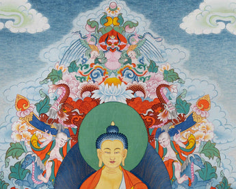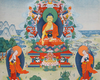 Experience the serene presence of enlightenment with our Shakyamuni Buddha Thangka Print on Canvas. This exquisite artwork beautifully captures the essence of the historical Buddha, Siddhartha Gautama, in a traditional Tibetan Thangka style. Printed on high-quality canvas, the rich colors and intricate details of this piece bring the wisdom and compassion of Shakyamuni to life. The canvas material adds a tactile and authentic feel to the artwork, enhancing its visual impact. Ideal for meditation spaces, home altars, or any sacred setting, this Thangka Print serves as a powerful reminder of the path to enlightenment. Allow the tranquility emanating from Shakyamuni Buddha's countenance to grace your surroundings, fostering a sense of peace and mindfulness. Elevate your spiritual practice with the timeless beauty and spiritual depth of our Shakyamuni Buddha Thangka Print on Canvas.