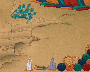 HAND-PAINTED WITH NATURAL LHASA STONE COLORS AND GENUINE 24K GOLD IN TRADITIONAL KARMA GADRI STYLE