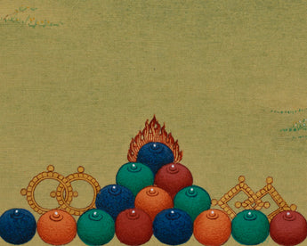 As you requested, we can arrange consecrations or blessings by taking the thangka to nearby monasteries or Rinpoches from the Boudha Stupa. We kindly ask that you contribute $50 to the monasteries for these blessing and consecration services.