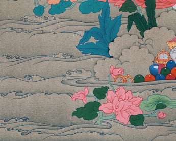 As you requested for consecrations/blessings, we can take the thangka to nearby monasteries/Rinpoches from the Boudha Stupa. We kindly ask that you contribute $50 to the monasteries for these blessing/consecration services.