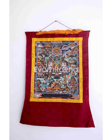 Vintage Buddha Life Story Thangka With Brocade