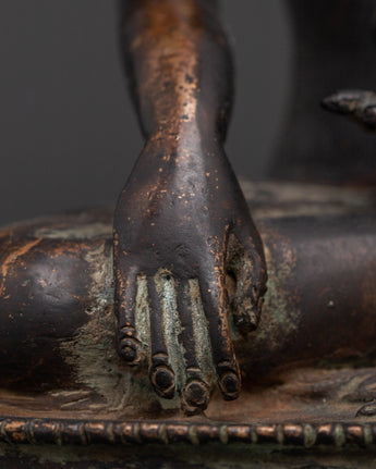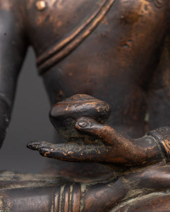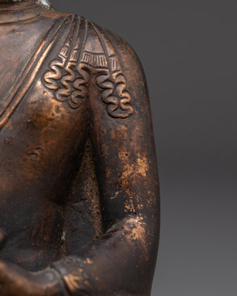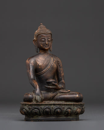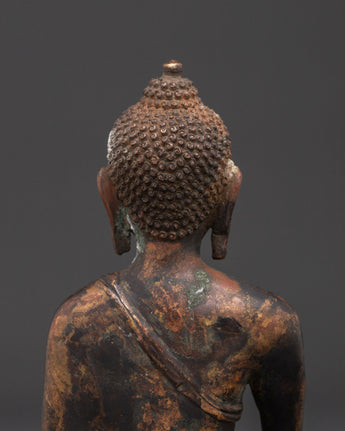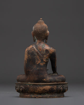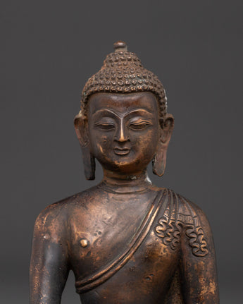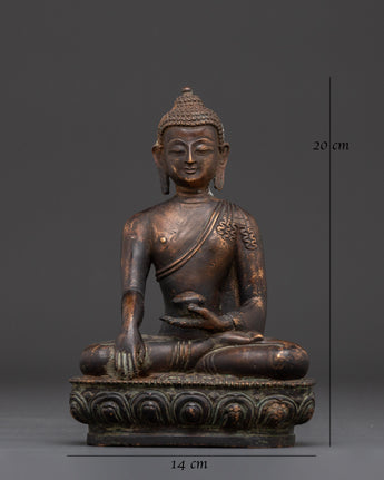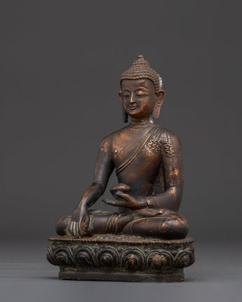20cm Shakyamuni Buddha Statue | Antique Copper Buddha for Altar
