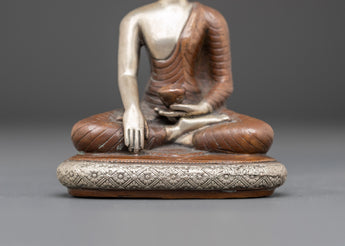 Invite harmony and serenity into your space with this Awakened Shakyamuni Buddha Statue, beautifully handcrafted from oxidized copper and finished with a gentle silver plating. This sacred figure represents Siddhartha Gautama, the historical Buddha, seated in deep meditation. With its soft expression and calming posture, the statue reflects the profound moment of spiritual awakening and mindfulness. It's ideal for a personal altar, meditation space, or peaceful corner in your home.
