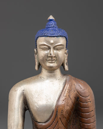 Handmade Awakened Shakyamuni Buddha Statue | Silver Plated Meditation Decor
