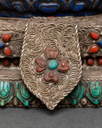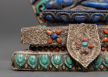 This Statue is a copper body with acrylic paint. The Shakyamuni Buddha is decipt in sitting on the lotus throne. The throne of buddha is made of high-quality stones. This Buddha statue is perfect for your meditation & altar space, Living room, and Office space for positivity. This Shakyamuni Buddha figure can be the best Buddhist gift or spiritual gift for your family & friends.