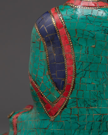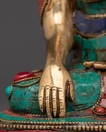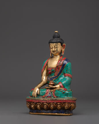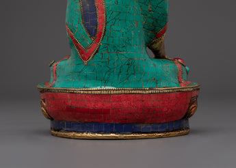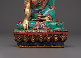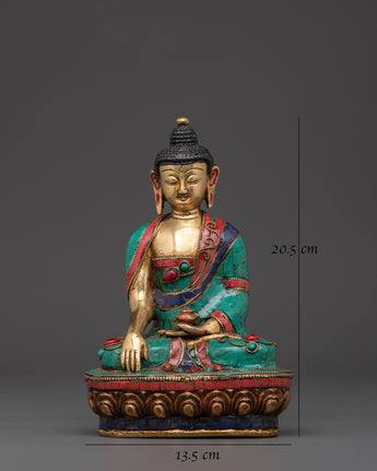 Crafted with care from brass and adorned with charming artificial turquoise and coral stones, this statue combines spiritual symbolism with elegant design. Weighing 1.93 kg, it has a sturdy presence with eye-catching details. Whether featured on a home altar, in a meditation nook, or given as a thoughtful gift, this Gautama Buddha statue serves as a gentle reminder of peace, wisdom, and freedom from suffering.