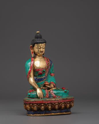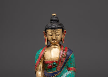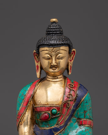 Brass Gautama Buddha Statue | Enlightened One in Vibrant Turquoise & Coral
