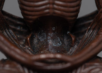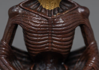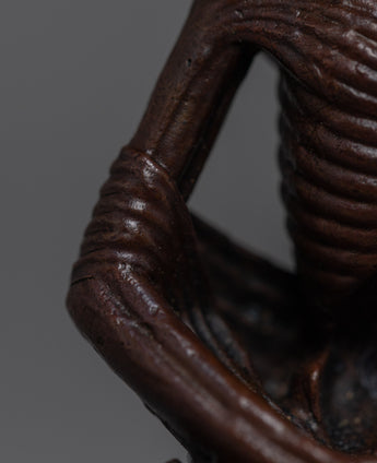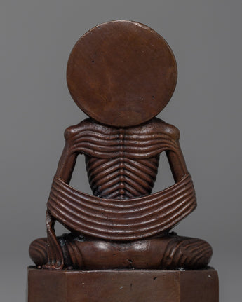 This unique fasting Shakyamuni Buddha Sculpture body is sculpted by a machine on a copper body and painted the face of the Buddha with gold. This small buddha statue is one of the rare sculptures from our collection. The deity is depicted in his fasting state, seated atop a moon disc lotus seat.