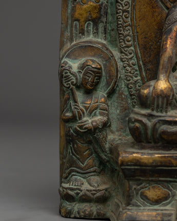 Figurine of Shakyamuni Buddha on Throne | Copper Sculpture