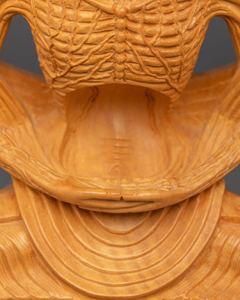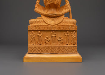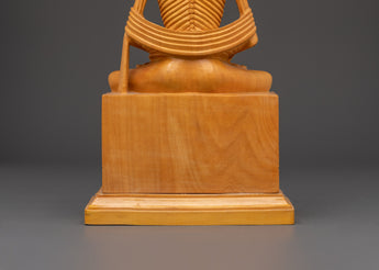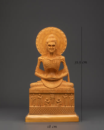 Every detail has been meticulously carved, from the exposed ribs and sunken cheeks to the serene expression that reflects inner calm. Symbolic carvings on the base reflect this transformative period in Buddhist history. This wooden sculpture is more than just a decorative item; it is a powerful symbol of spiritual awakening and makes an excellent centerpiece for any meditation space, altar, or spiritual collection.