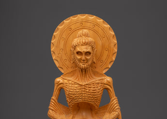 This Handcarved Fasting Buddha Shakyamuni Statue depicts Siddhartha Gautama's profound spiritual journey during his period of rigorous ascetic practice. This statue, crafted from wood and accented with subtle acrylic color, measures 31.5cm in height, 18cm in width, and weighs 1.14kg. It depicts the Buddha in emaciated form, representing renunciation, spiritual endurance, and the pursuit of enlightenment through meditation and self-discipline.
