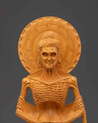Handcarved Fasting Buddha Shakyamuni Statue | Wooden Ascetic Sculpture