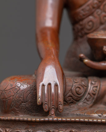 In Buddhist philosophy, Shakyamuni Buddha represents the historical Buddha who attained enlightenment and taught the Dharma to all beings. His figure symbolizes the triumph of truth over ignorance and the attainment of eternal peace. Placing this oxidized copper Buddha statue in your home promotes attention, spiritual enlightenment, and peace in daily life.