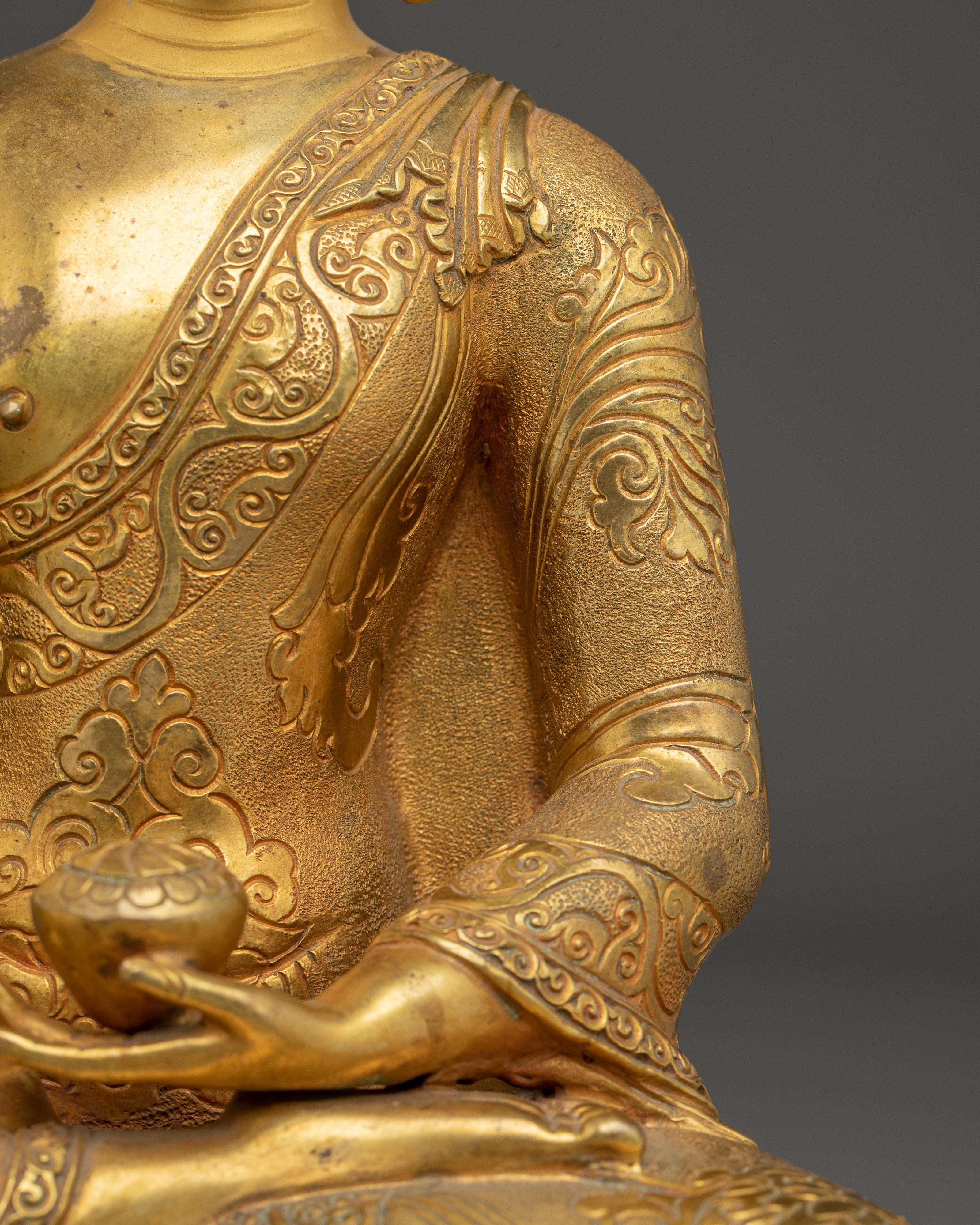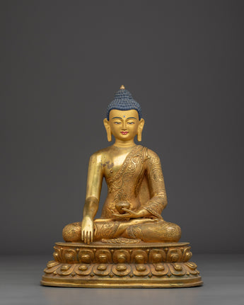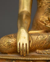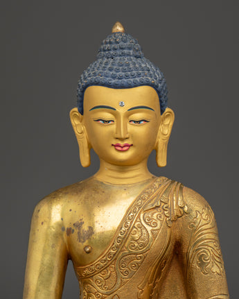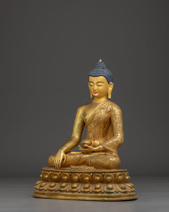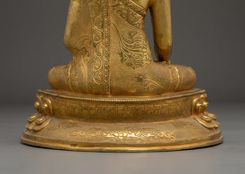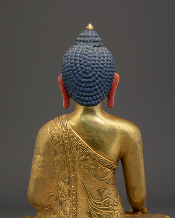 The statue's serene expression and seated posture symbolize enlightenment, mindfulness, and the pursuit of inner peace. Whether placed on a meditation altar or as part of your home décor, this gold-plated Buddha sculpture offers a sacred touch to any environment. The combination of copper and gold not only elevates the statue’s aesthetic appeal but also ensures its durability, making it a lasting symbol of spiritual harmony.