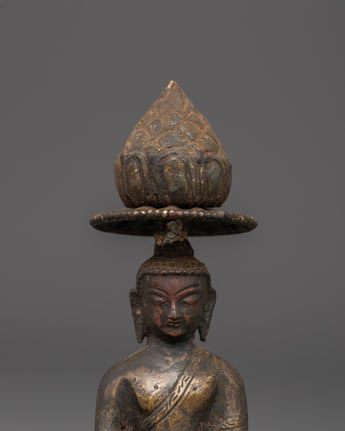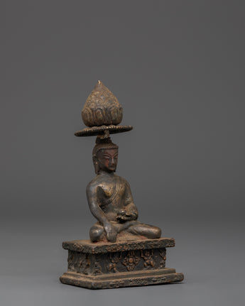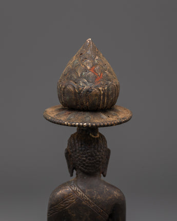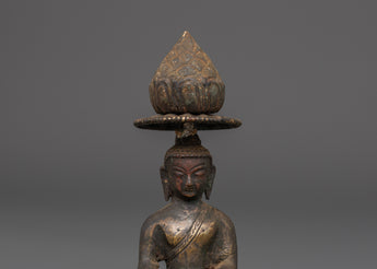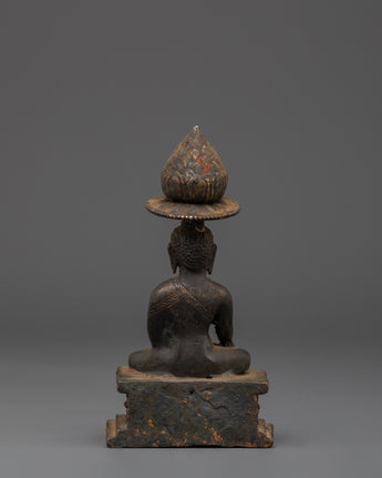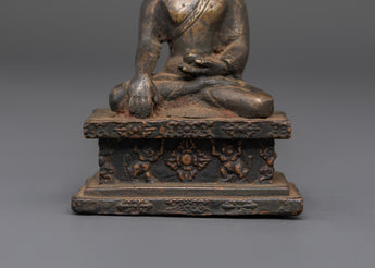 The oxidized copper gives the statue an elegant appearance, enhancing its spiritual presence. Whether you place it in your home as a reminder of the Buddha's teachings or offer it as a meaningful gift, this handcrafted piece embodies the wisdom and peace associated with Buddhist practice.