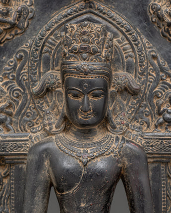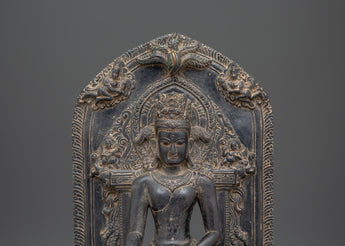 The Shakyamuni Buddha on Throne Statue is a captivating tribute to the historical Buddha, symbolizing peace, wisdom, and the path to enlightenment. Carved from power stone, this statue stands 39cm tall and 24.5cm wide, with a substantial weight of 5.46kg, ensuring it commands presence wherever it is placed. Shakyamuni is depicted seated serenely on a throne, embodying deep meditation and inner calm that inspires reflection and spiritual growth. This finely sculpted statue serves as an exceptional centerpiece for meditation rooms, home shrines, or spaces dedicated to mindfulness and tranquility. Its thoughtful design encourages a sense of harmony and contemplation, making it not only a piece of spiritual décor but also a source of motivation on your journey toward awakening. Elevate your spiritual environment by embracing this powerful symbol of Buddhist teachings and timeless wisdom.