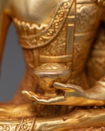 This Meditating Buddha Shakyamuni Sculpture depicts Siddhartha Gautama, the historical Buddha, seated in deep meditation with a serene expression and graceful posture. The Bhumisparsha Mudra, or earth-touching gesture, represents the moment of enlightenment. In his left hand, he holds a detailed alms bowl, symbolizing detachment from materialism and spiritual purity.