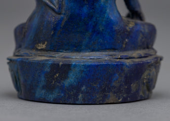 This rare-sized Namo Shakyamuni Buddha statue is handcrafted on a single stone with acrylic painting. We have depicted the deity sitting elegantly on top of a moon disc lotus in this Tibetan statue. His right hand is in eath-touching mudra, while his left is holding an alms dish.