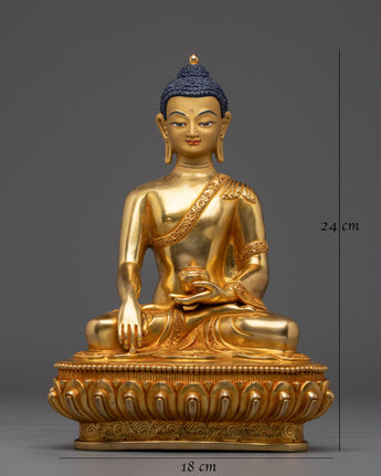This Sculpture of Shakyamuni Buddha beautifully captures the serene presence of Siddhartha Gautama, the historical Buddha revered as the Enlightened Teacher who revealed the path to liberation. Crafted with meticulous attention to detail, the gold-plated copper statue exudes tranquility and profound wisdom, making it a powerful focal point for meditation rooms, personal shrines, or temple spaces. Its calm expression and elegant posture serve as a constant reminder of mindfulness, compassion, and the ongoing journey toward enlightenment. Ideal for spiritual practitioners, this statue inspires calm and focused reflection, nurturing a deeper connection to Buddha’s timeless teachings.