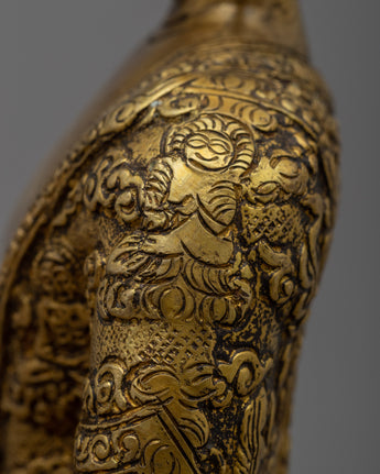 The Shakyamuni Buddha Prayer Statue is meticulously handcrafted on a solid brass body, showcasing the dedication and skill of the artisans. The statue embodies the serene and meditative presence of Shakyamuni Buddha, the founder of Buddhism. With meticulous attention to detail, the statue captures the essence of his teachings and enlightenment. The statue weighs approximately 3.06 kg, providing a substantial and solid representation of the revered figure. Its craftsmanship and weight make it an ideal centerpiece for meditation or as a focal point in any spiritual or sacred space.