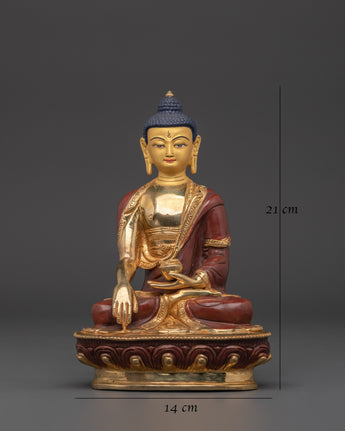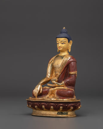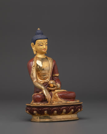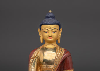 The oxidized copper body has a sacred, ancient appearance, and the gold plating accentuates the Buddha's radiant beauty. This handcrafted statue serves not only as a stunning piece of art but also as a meaningful symbol of wisdom, compassion, and inner peace. The Shakyamuni Buddha is ideal for meditation rooms, altars, or as a gift for loved ones, reminding them to embrace peace, clarity, and compassion.