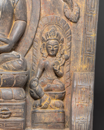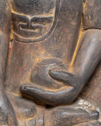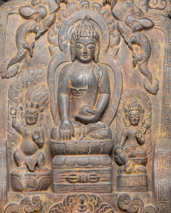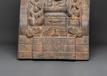 Shakyamuni Buddha, also known as Siddhartha Gautama, is revered as the awakened sage whose teachings altered spiritual practice in Asia and beyond the world. This magnificent sculpture pays tribute to centuries of devotion and craftsmanship in Tibetan and Himalayan Buddhist art. The wood's natural texture adds to its beauty. At the same time, the detailed carvings express profound significance, such as the Buddha's elongated earlobes denoting wisdom and his lotus seat representing purity and spiritual awakening. This statue is not only a stunning centerpiece, but it also serves as an inspiration for meditation, inner peace, and compassion growth.