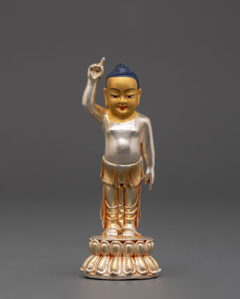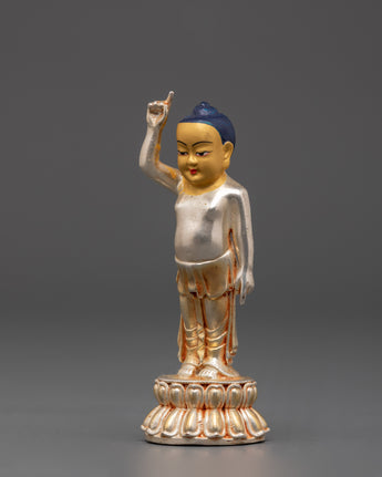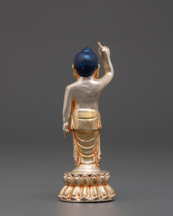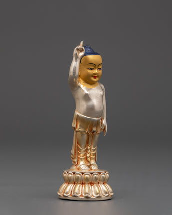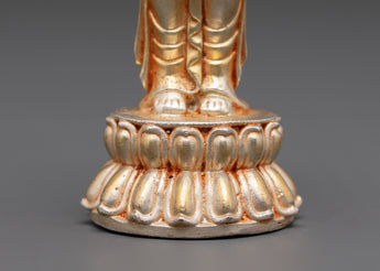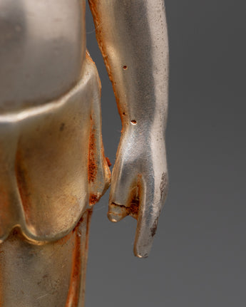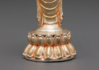 This silver-plated Siddhartha Gautama Statue embodies peace, mindfulness, and enlightenment. Crafted on a copper body and finished with radiant silver and gold plating, this machine-made statue beautifully represents Siddhartha Gautama, the founder of Buddhism. Measuring 11.5cm in height and 4.5cm in width, and weighing 0.21kg, it is perfectly sized for meditation altars, shrines, or as a meaningful piece of spiritual home décor.