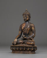 The oxidized copper craftsmanship showcases great Tibetan creativity, with subtle golden hues representing the brilliant essence of enlightenment. The statue's delicate lotus pedestal represents purity and spiritual elevation, making it an excellent focal point for meditation rooms, personal altars, or holy settings. The delicate shine of the copper patina captures light brilliantly, sending tranquil energy throughout any setting. This Buddha of Light statue is not just a symbol of enlightenment, but also an encouragement to cultivate awareness and compassion in daily life. Shakyamuni Buddha, often known as the Buddha of Light, represents the pinnacle of wisdom and compassion in Buddhism. His image is thought to remove darkness, both inner and exterior, providing peace, healing, and clarity to the practitioner.