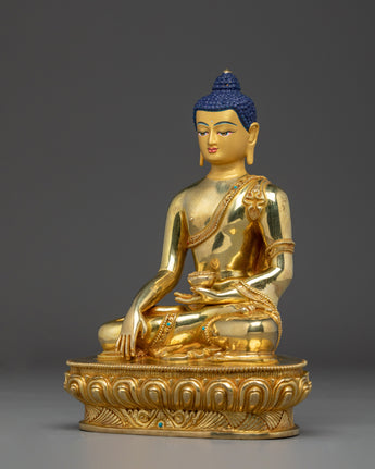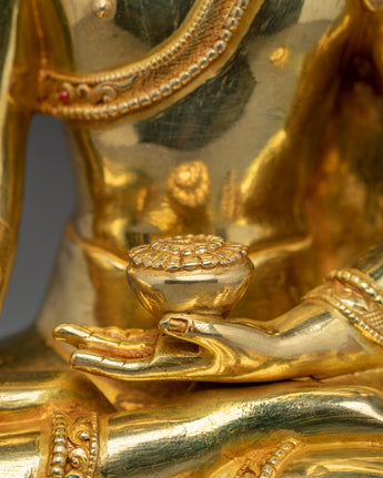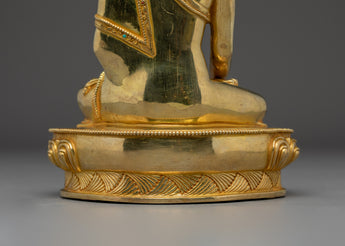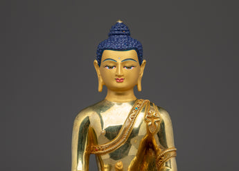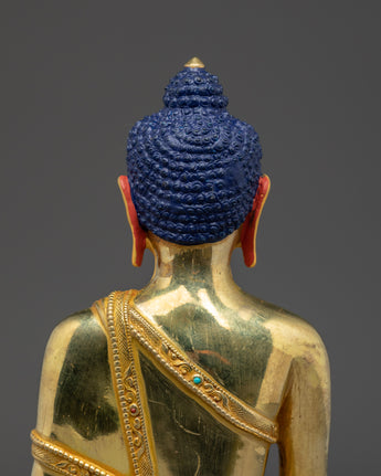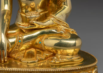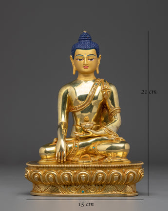 Perfect for altars or home decor, the Shakyamuni Buddha sculpture invites calmness and spiritual harmony into any setting. Crafted with detailed artistry, its copper base, enhanced by a gold-plated finish, creates a peaceful ambiance ideal for meditation, prayer, or mindful daily routines. This Tathagata Shakyamuni Buddha statue makes an exceptional gift for those seeking spiritual growth or wishing to enrich their environment with uplifting energy.