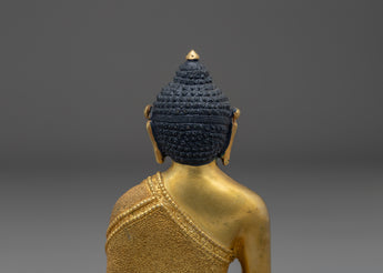 The Awakened Buddha Shakyamuni Statue depicts Buddha's serene and calming essence in a wonderfully carved form. The statue's calm attitude represents Shakyamuni Buddha's core teachings of serenity, wisdom, and spiritual awakening. The Buddha's face has a peaceful look that invites inward reflection, while every detail, such as the robes and hand gestures, represents enlightenment and harmony. This item is a continual reminder of the way to serenity and mindfulness, making it an excellent complement to any spiritual setting.