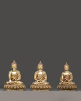 Handcrafted Tibetan Three Buddha Statue Set | Buddha for Spiritual Altar Decor