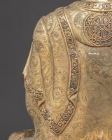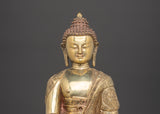 The Tibetan Three Buddha Statue Set features three revered deities from Buddhist tradition: Medicine Buddha, Shakyamuni Buddha, and Amitabha Buddha, each representing healing, wisdom, and boundless compassion. This sacred set, crafted from copper with a gold-plated finish, measures 45cm in height and 32cm in width, weighing a total of 7.88kg. The painstaking design depicts each Buddha's tranquil smiles, flowing robes, and symbolic positions, making this collection a powerful emblem of spiritual devotion and sacred beauty.