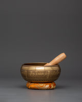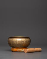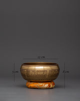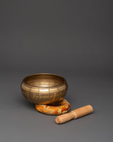 The Himalayan Singing Bowl with a brass body is also known as the Tibetan singing bowl and is used for its meditative and healing qualities. These healing bowls play an essential role in mindfulness practices and sound therapy. The bowls are made up of brass, which is noted for its deep, resonant tones. This bowl, measuring 5.5cm without the base and 8cm with the base, has a diameter of 13cm and an inner depth of 5cm. It is tiny but powerful in sound. The bowl alone weighs 0.57 kg. The accompanying wooden stick measures 13cm in height, 2.3cm in width, and weighs 0.032kg. The overall weight of this set is 0.602 kg. This small but potent bowl is great for chakra balancing, meditation, yoga practice, and mindfulness rituals.