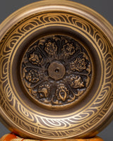 The brass body produces a deep, harmonic resonance that helps to eliminate bad energy and provides a sensation of tranquility. Its portable size makes it ideal for both personal and commercial use. The nicely crafted hardwood striker creates clear, long-lasting tones that improve meditation and sound therapy sessions. This Tibetan singing bowl is a utilitarian instrument and a lovely decor piece, making it ideal for spiritual practitioners, yoga aficionados, and anybody looking for peace. Use it to create a quiet environment, improve your meditation practice, or give it to someone who needs spiritual harmony.