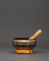 Enjoy the soothing vibrations of our Traditional Tibetan Singing Bowl, a Handcrafted Brass Meditation Sound Healing Bowl. This wonderfully created bowl, intended to encourage relaxation and spiritual wellness, includes an intricately engraved Om Mani Padme Hum mantra representing compassion and oneness. The bowl is made of brass, which is noted for its deep, resonant tones. This bowl, measuring 5.5cm without the base and 8cm with the base, has a diameter of 13cm and an inner depth of 5cm. It is tiny but powerful in sound. The bowl alone weighs 0.58 kg. The accompanying wooden stick measures 13cm in height, 2.3cm in breadth, and weighs 0.032kg. The overall weight of this set is 0.612 kg. This small but potent bowl is great for chakra balancing, meditation, yoga practice, and mindfulness rituals.