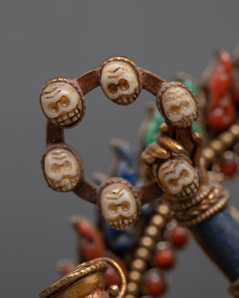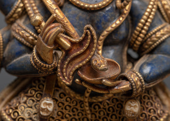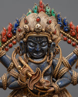 Mahakala is the guardian god of Mahayana Buddhism and all Tibetan Buddhist schools. He represents various ways, each with its features and characteristics. In some circumstances, he is seen as the emanation of distinct beings, such as Avalokitesvara or Chakrasamvara. The five kleshas (adverse ailments) are transmuted into the five pearls of wisdom, and Mahakala is generally typically represented with a crown of five skulls.